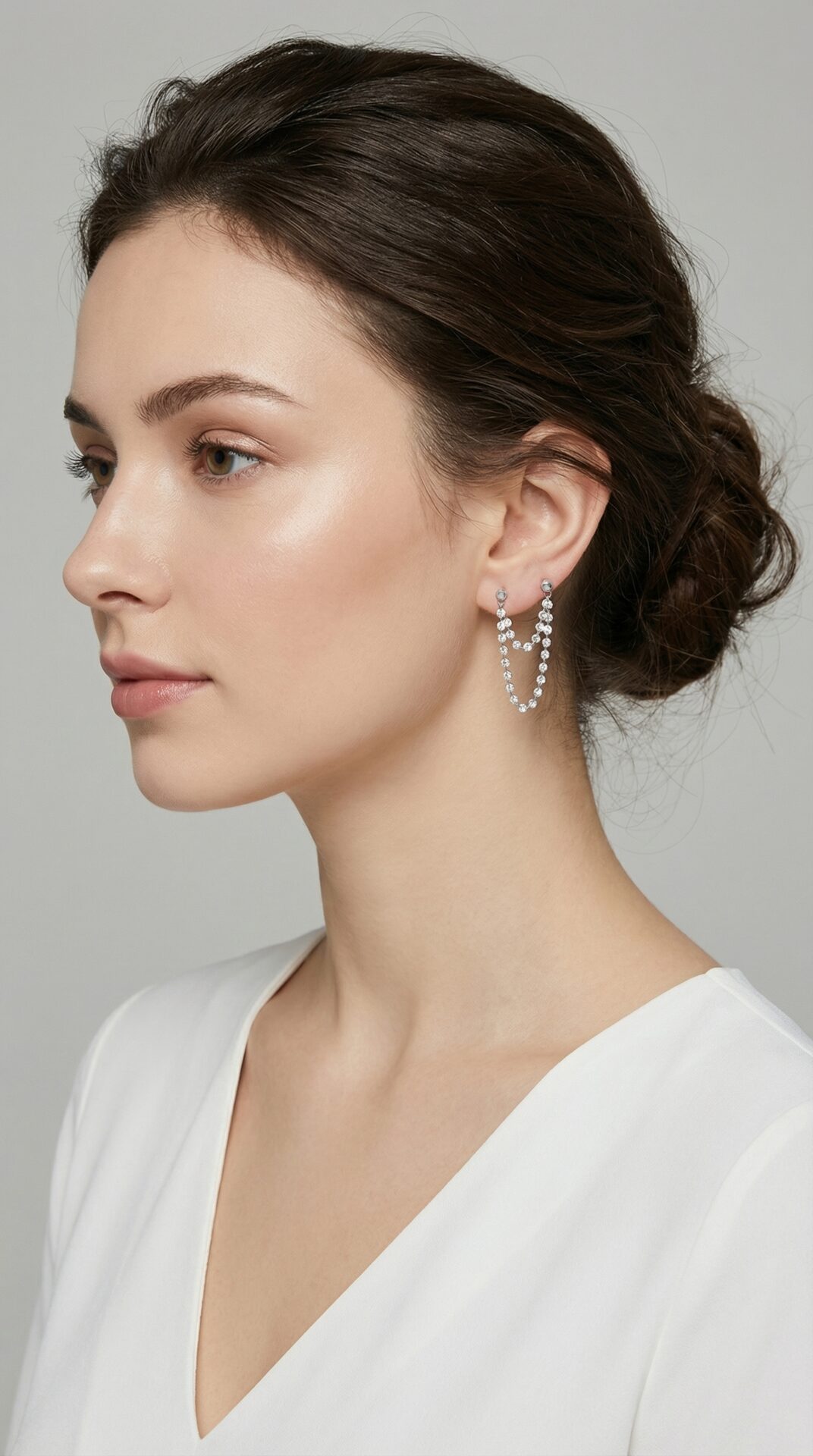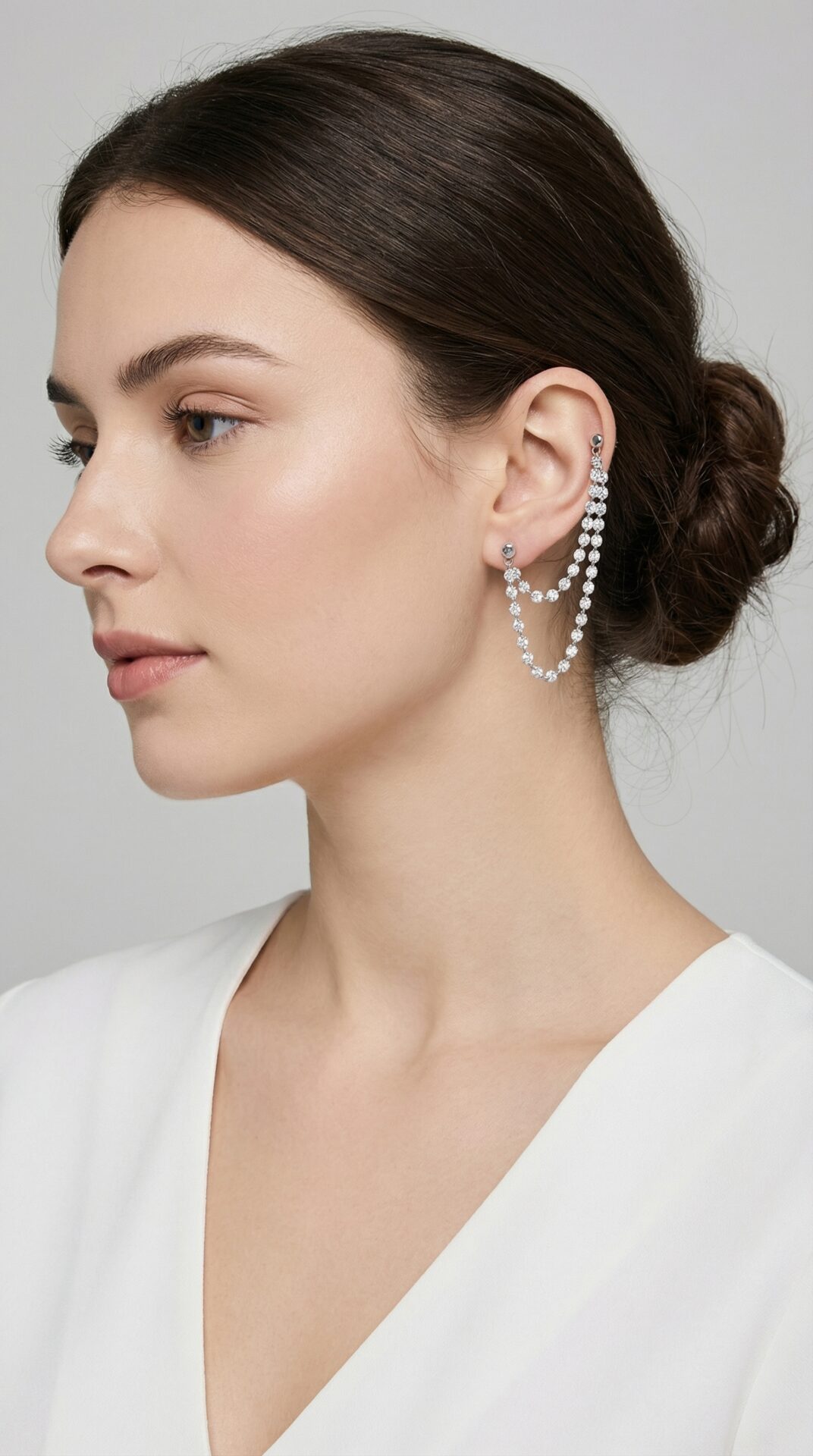Овој дизајн на обетки може да се носи на различни начини со дупли механизам на закопчување. Моделот оди во пар од две обетки.